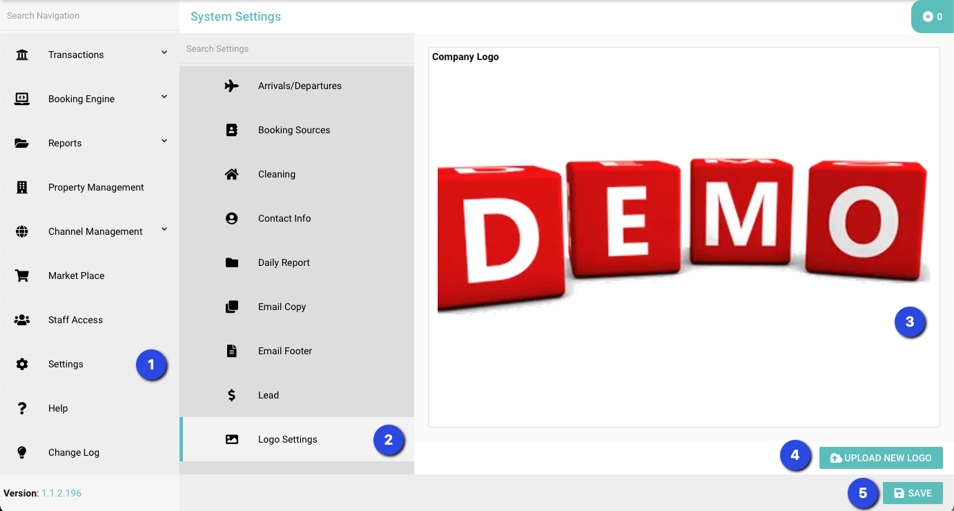 General Settings - Logo Settings Eddie June 19, 2024 02:47 Updated The below article explains where to add a Logo which will display at the top of any emails sent from Homhero. Click Settings from the Homhero side menu. Select General Settings > Logo Settings tab. Click Upload New Logo. Add the image from your desktop/laptop. Click Save.See below example of where the 'Logo' displays on Booking Receipts (highlighted in blue box). Related articles General Settings - Email Notifications General Settings - Email Footer RMS Initial Property Options Setup Comments 0 comments Please sign in to leave a comment.