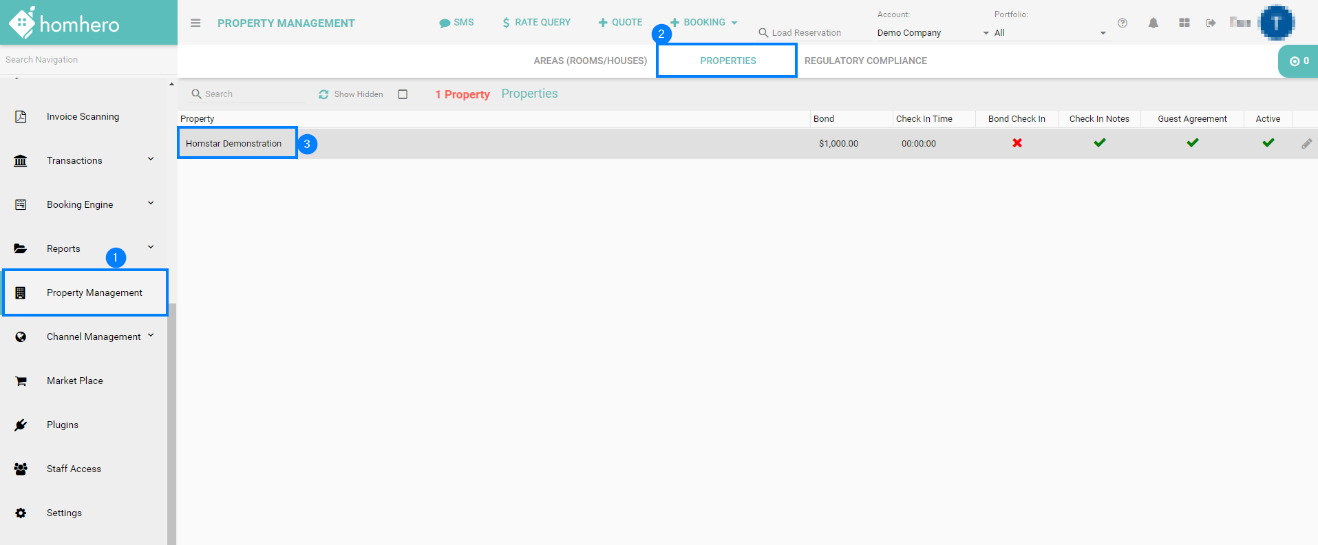 - Click Property Management from the Homhero side menu