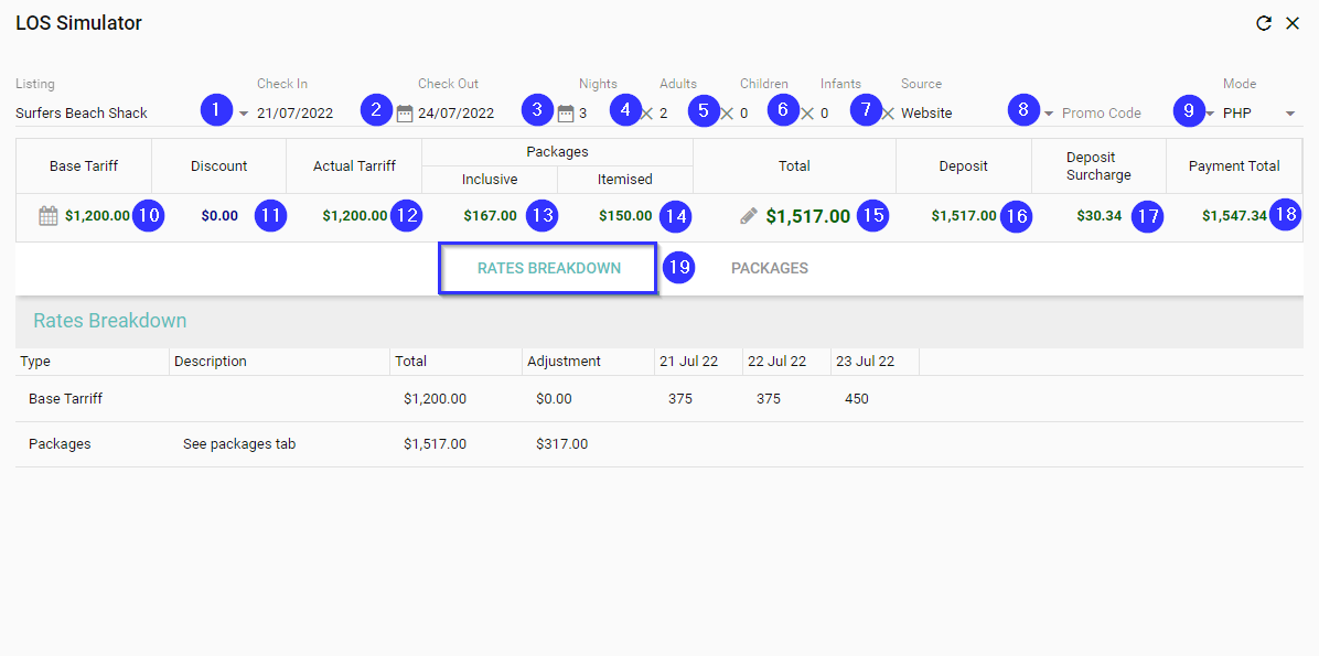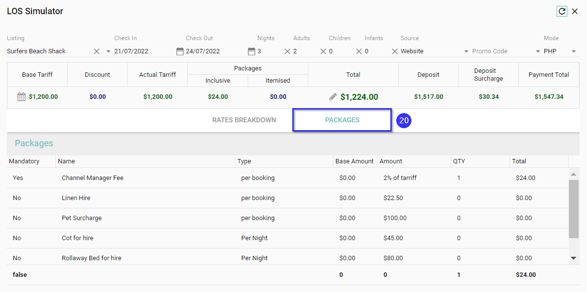 - Packages (Itemised) - View the value of itemised packages for the listing and dates selected
