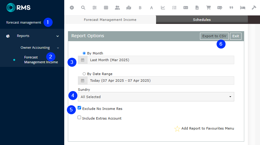 There is a report available in RMS to show income of accommodation, commission and any other sundry charges used for any period past, present or future.