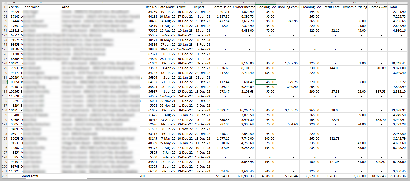 Please be aware that this report will show bookings that have arrived and departed during the period. So if you want a report for a specific month/period, you will need to remove bookings that have arrived in the period but not departed. You will only be able to do this once you have downloaded it to CSV.
