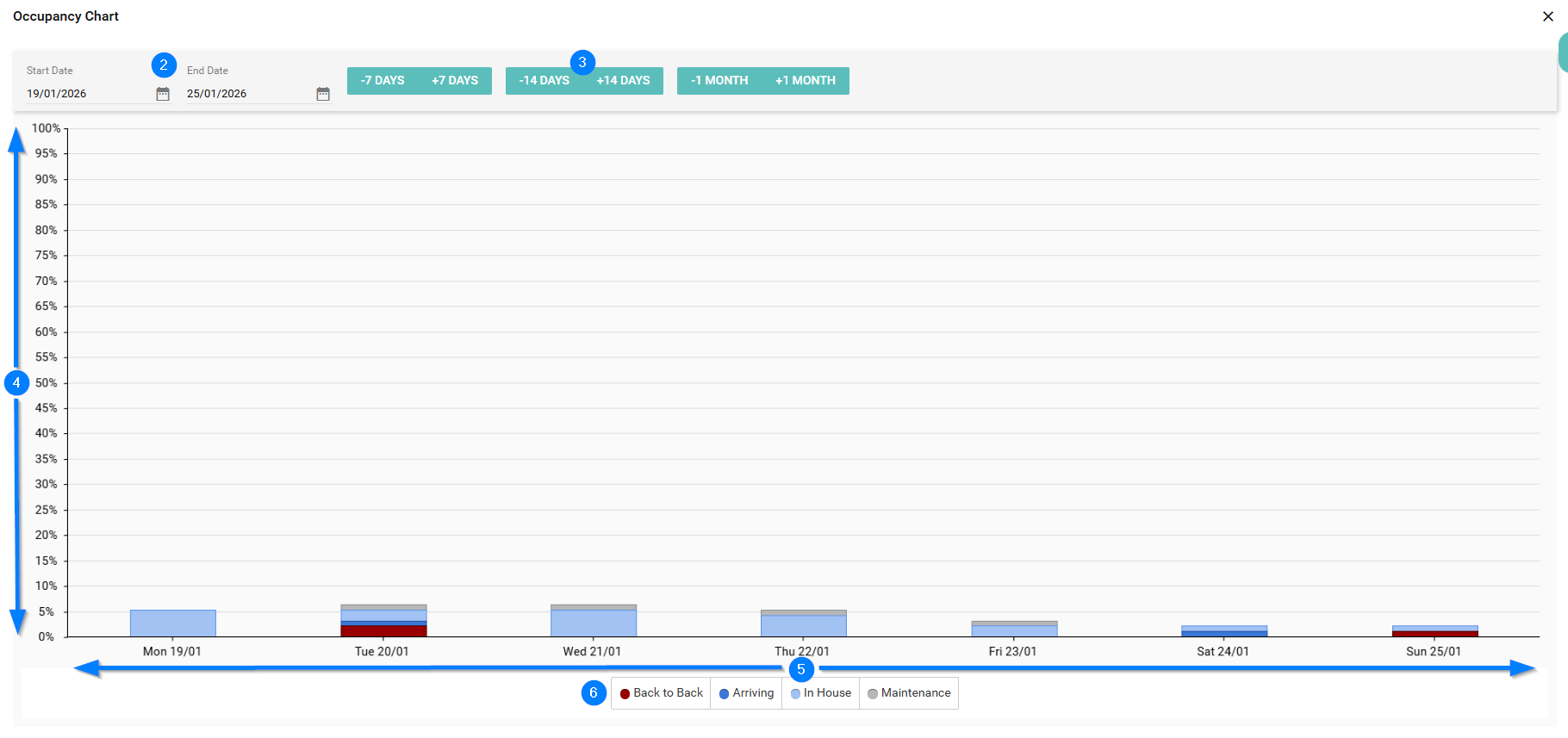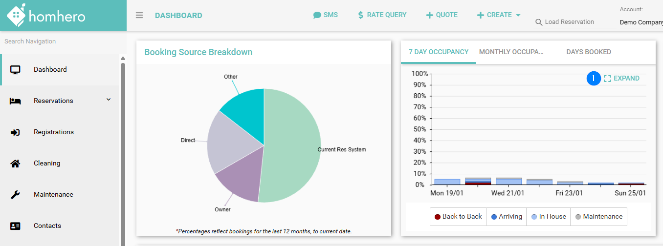 - Click the Expand button from the 7 Day Occupancy Chart on your Dashboard.