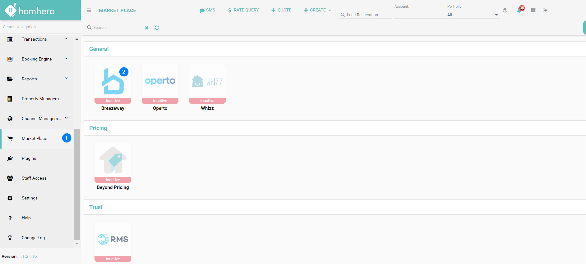 Before importing your Homhero properties in Breezeway, you will need to add Breezeway in the Homhero Market Place as per the following steps:
