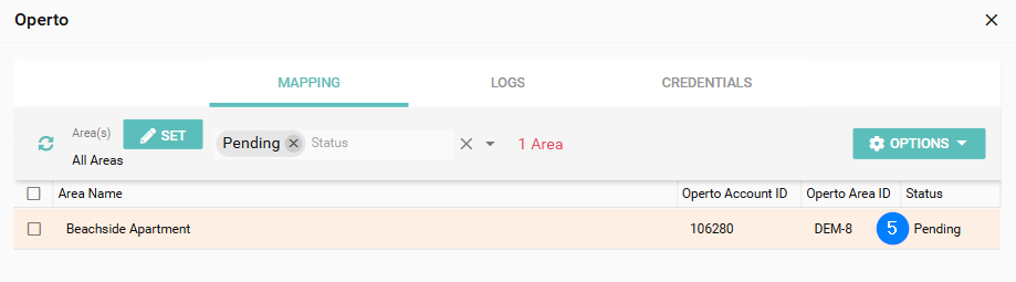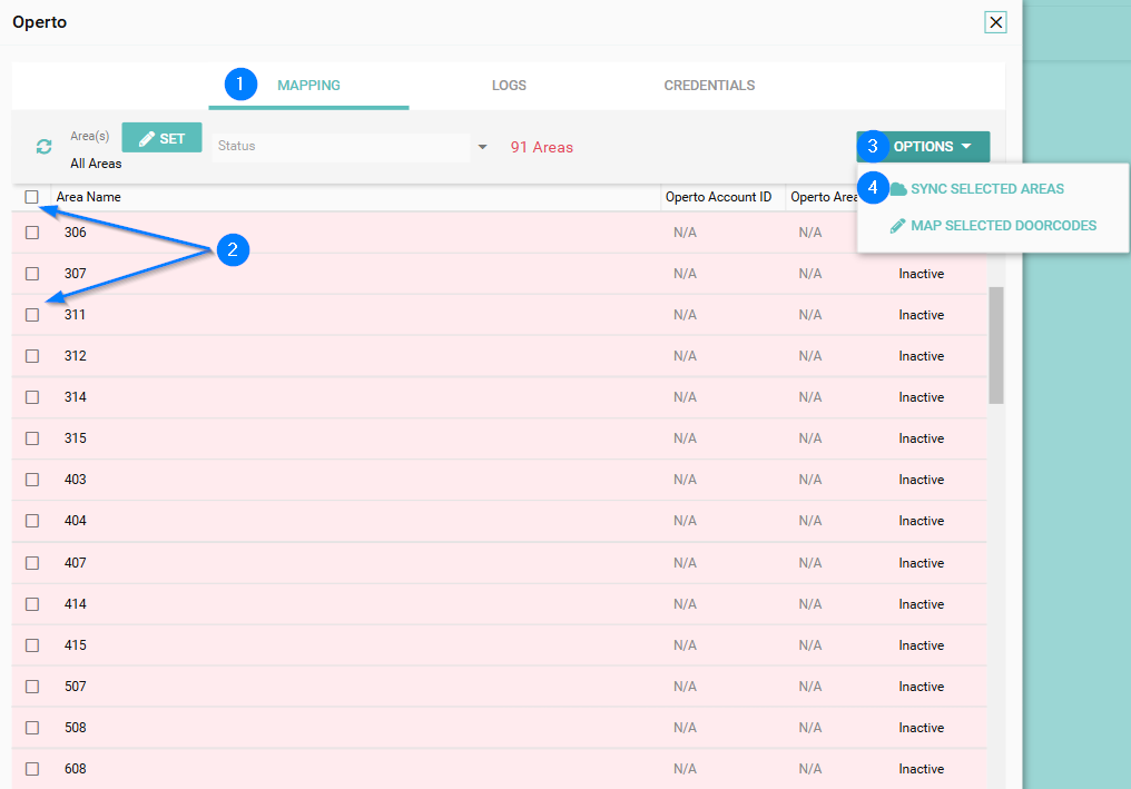 - Go to the Mapping tab and select the Areas (Listings) you want to sync with Operto.