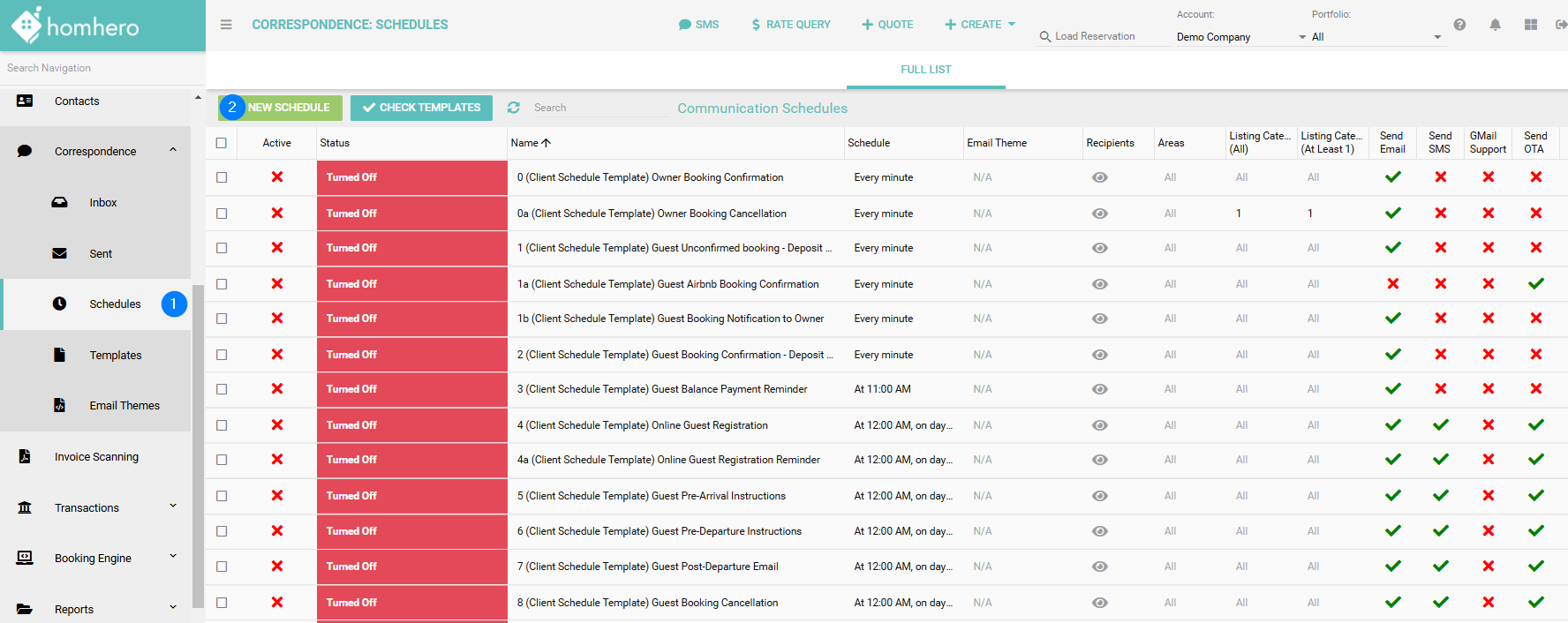 - Select the relevant messaging template, or create a new one by clicking the New Schedule button