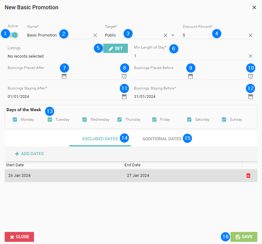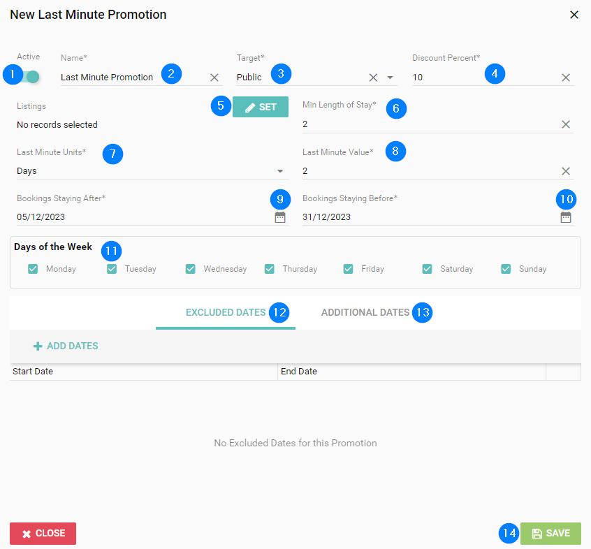 - Additional Dates - Add additional dates you would like to add to this promotion