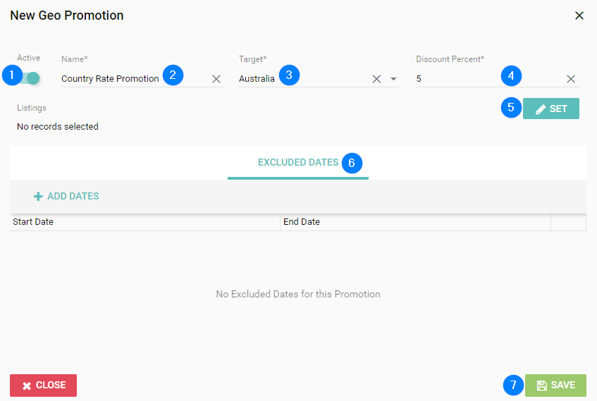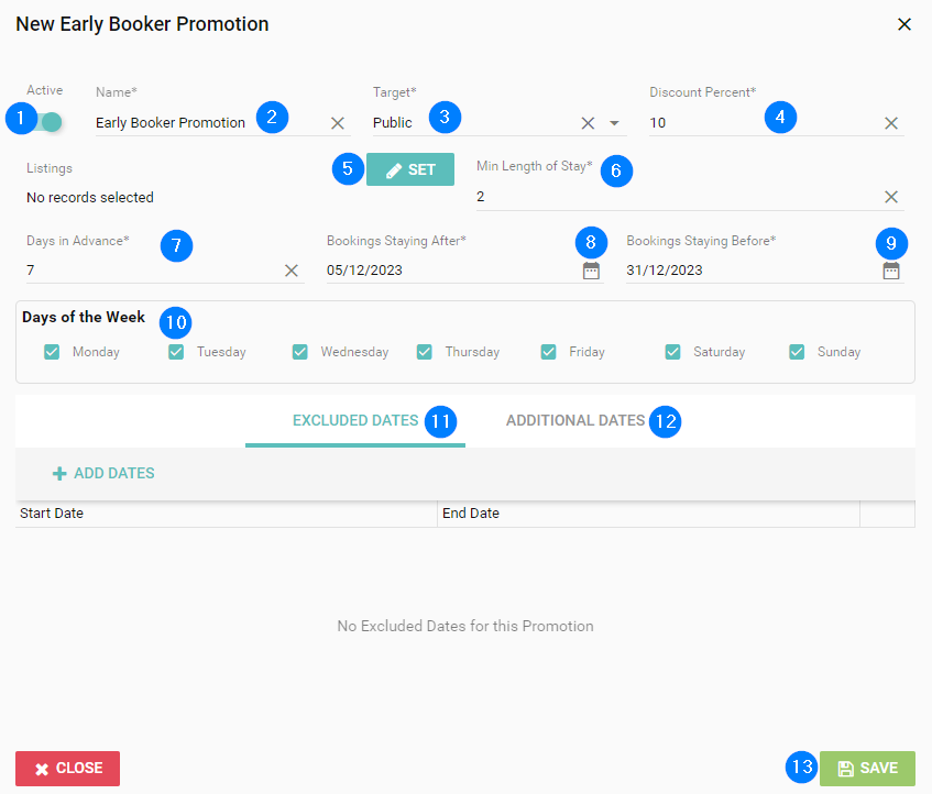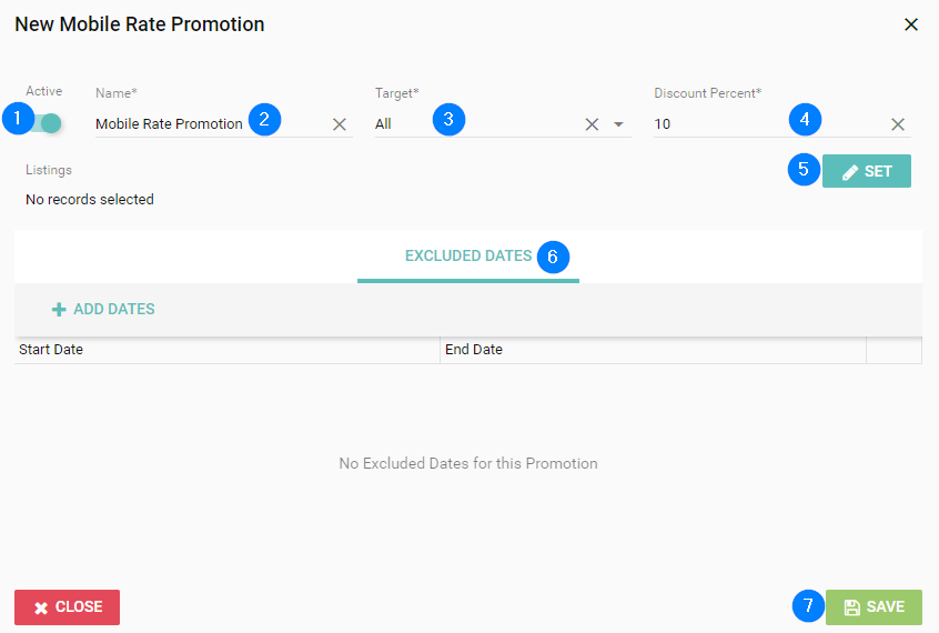 - Excluded Dates - Add dates that you would like to exclude from this promotion