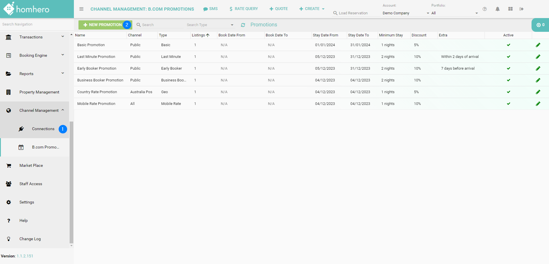 There are 6x Booking.com Promotions available to be setup in Homhero: