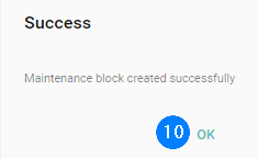 - You should receive a Success pop-up box to confirm if the Maintenance Block has been created successfully, click OK
