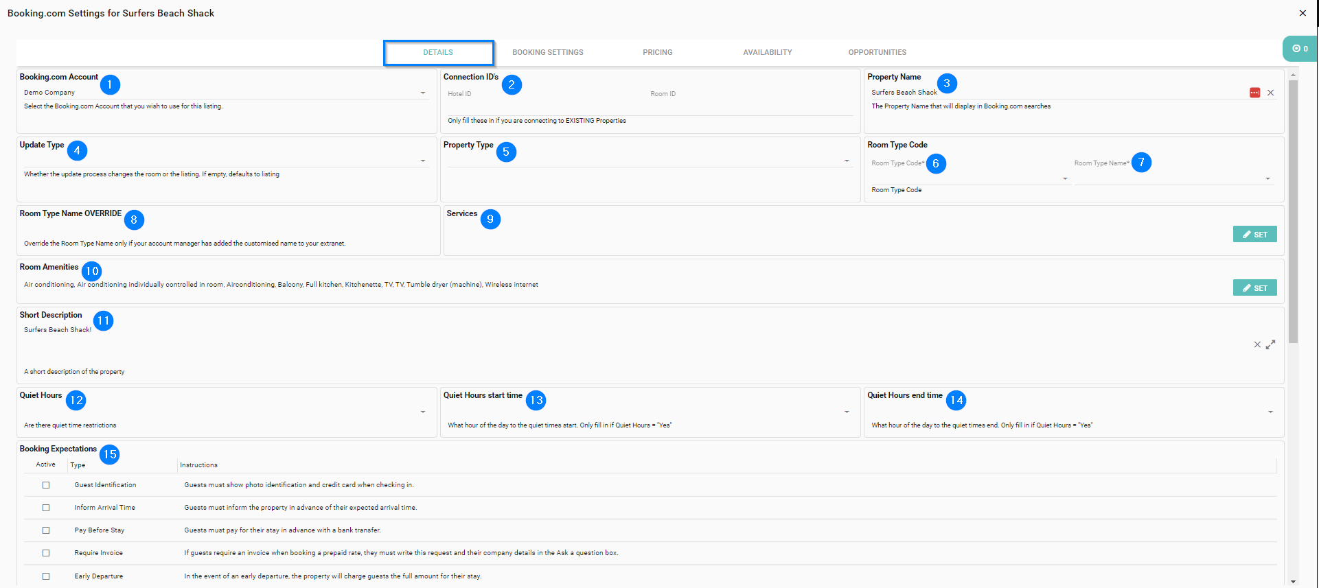 This article will explain how to setup the listing settings for each Booking.com listing before you publish the listing to Booking.com. Any of the same settings that are available in your DEFAULT Booking.com Settings can be overridden here on a listing level (excluding Services and Room Amenities).