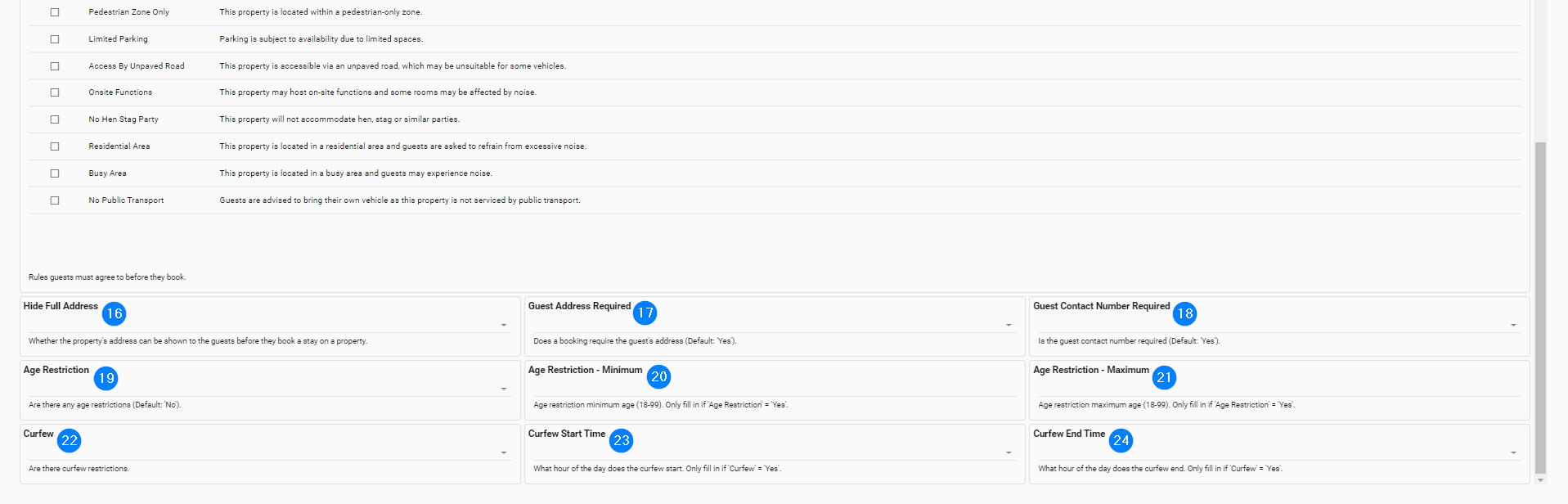 Hide Full Address - Control whether the property's address can be shown to the guests before they book a stay on a property. Yes or No