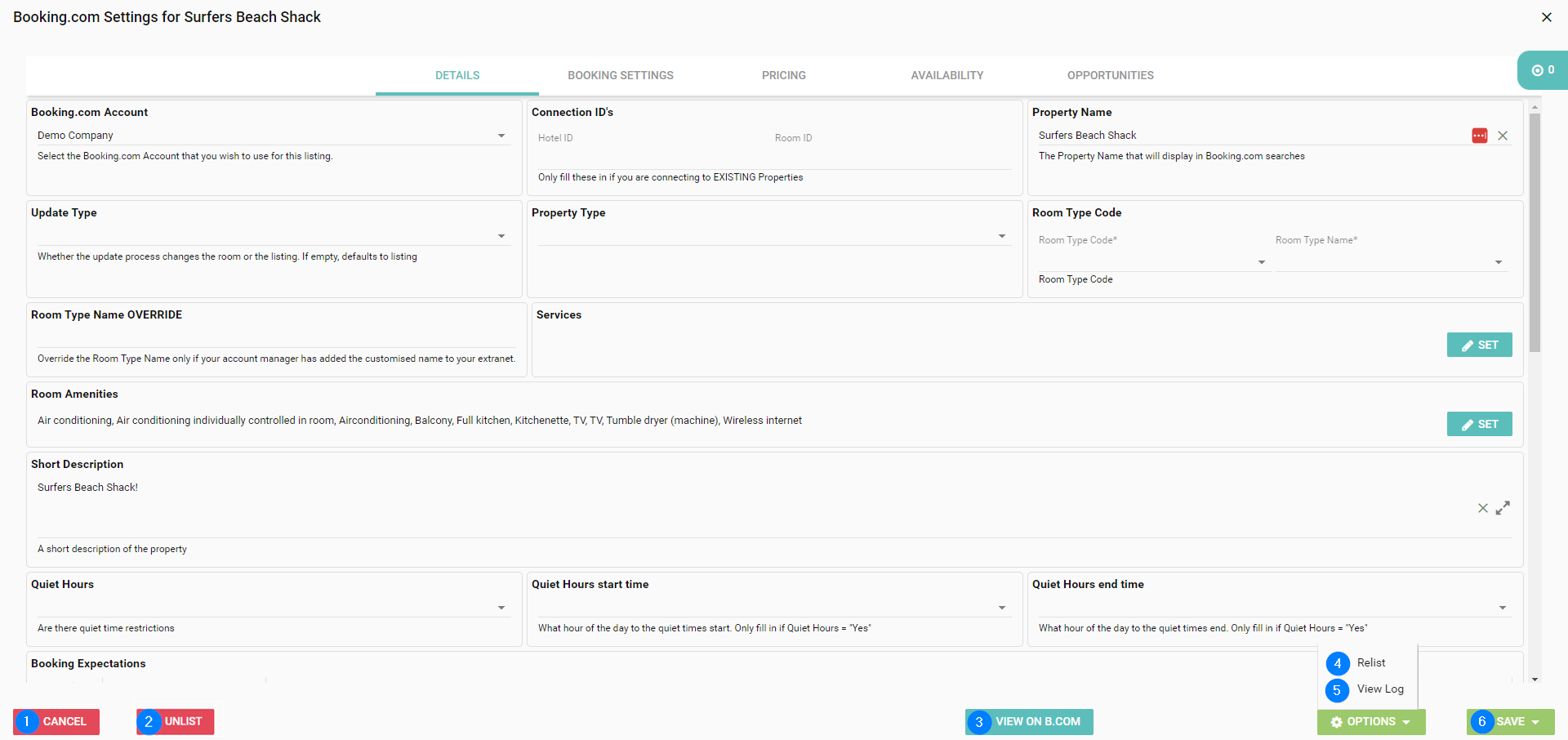 - Unlist - If a property is already listed on Booking.com, this will unlist the property, making it unavailable online