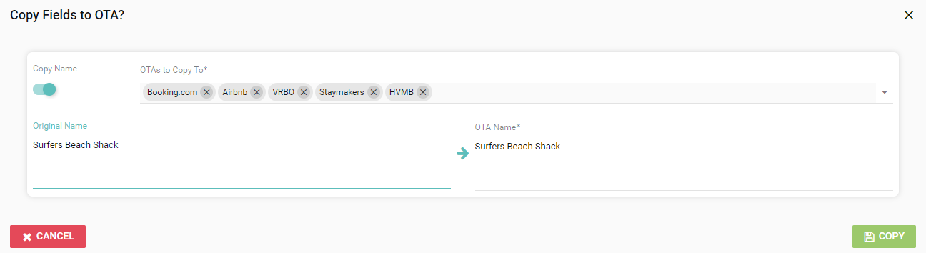 Property Name - The name of your listing will automatically feed from your main listing settings if you have used the 'Copy Fields to OTA' tool, however you can also override the listing name here manually. This will be the Property Name that will display in Booking.com searches