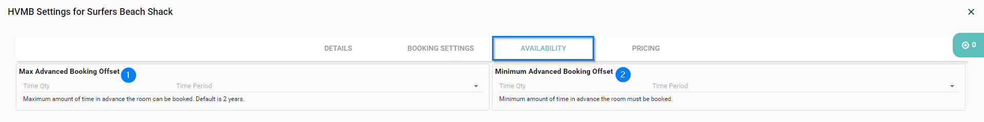 *Updating this setting will override your DEFAULT HVMB Settings for this listing - Maximum Advanced Booking Offset - The maximum amount of time in advance the room can be booked. Default is 2 years