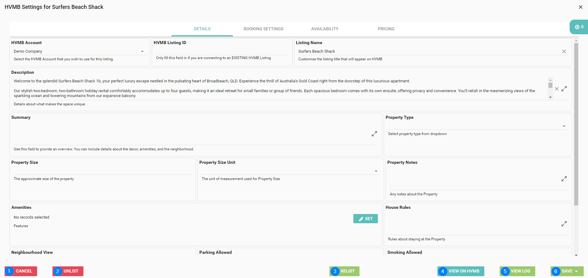 - Unlist - If a property is already listed on HVMB, this will unlist the property, making it unavailable online