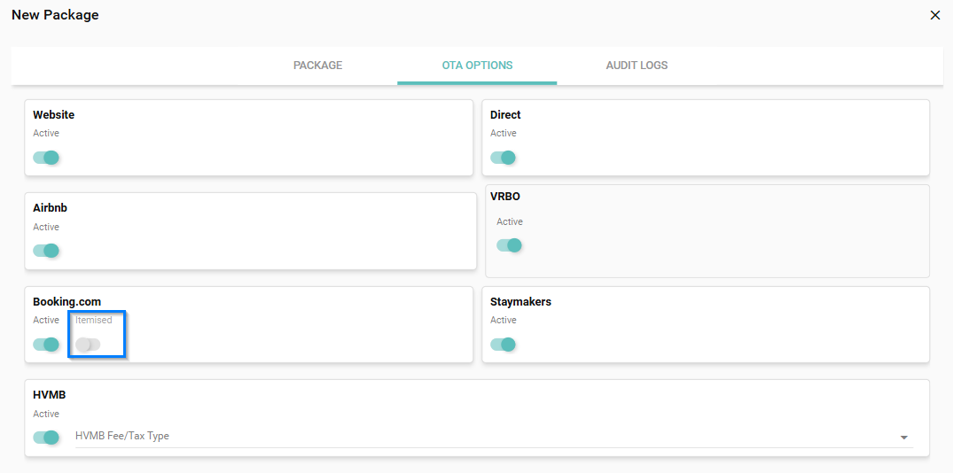 There are several packages types in Homhero that are not supported by Booking.com when the itemised toggle is turned on under OTA Options. These include: