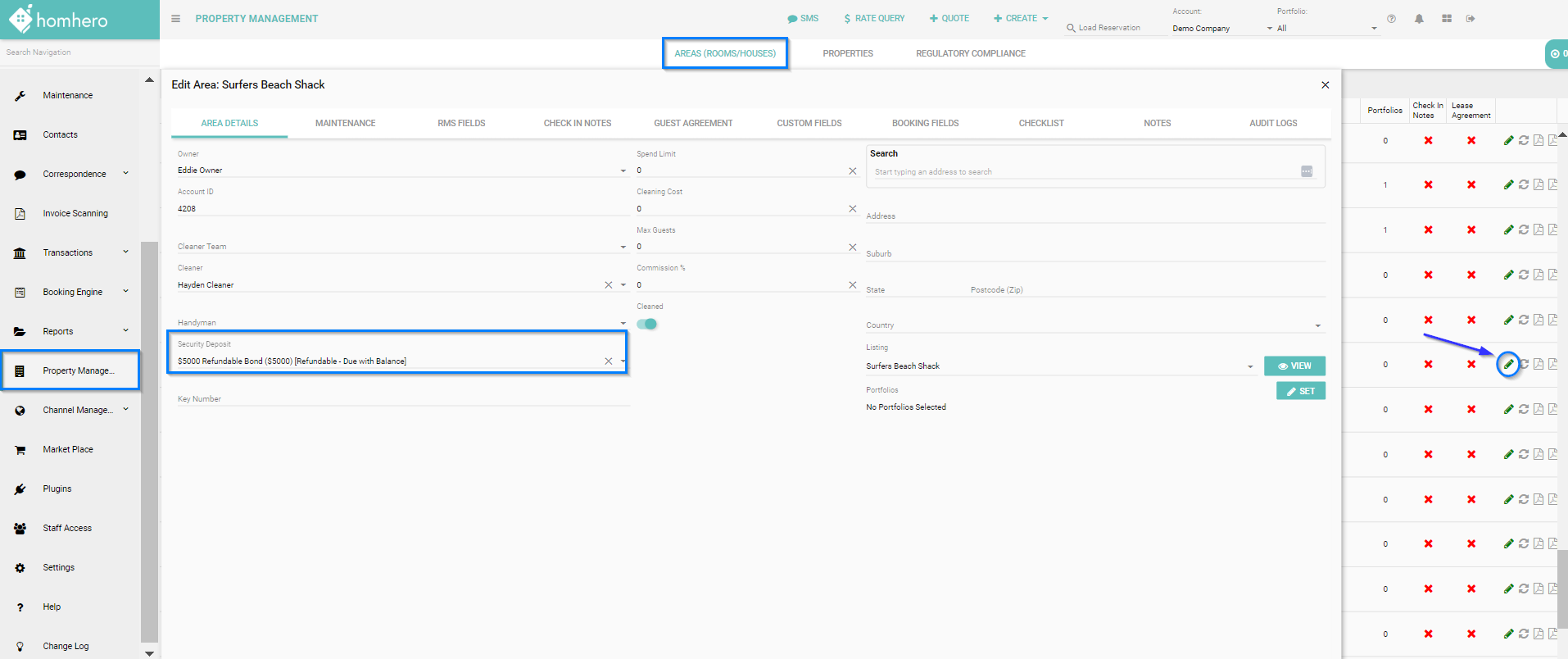 Security Deposits for Booking.com can be setup and managed on the Homhero side. We have listed the below areas that need to be setup in Homhero to ensure this information feeds correctly on Booking.com.