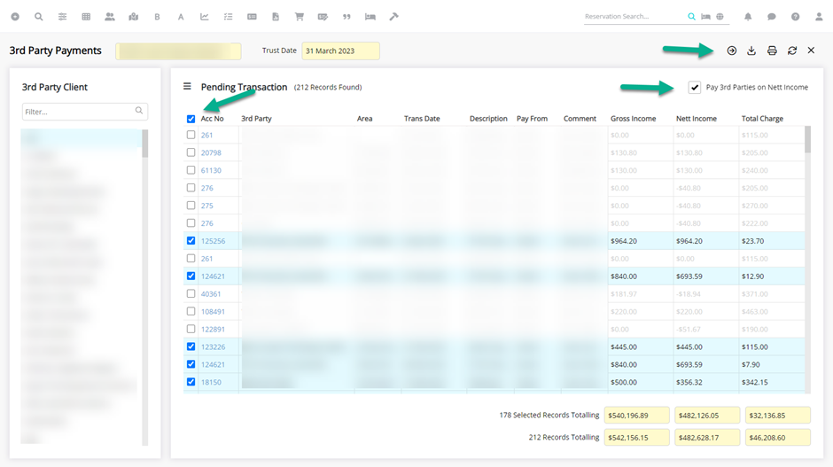 - If you would like to only pay 3rd party payments from the net amount available use the tick box Pay 3rd Parties on Nett Income (this means that any management fees owing to you will be held and not used to pay Owner invoices)