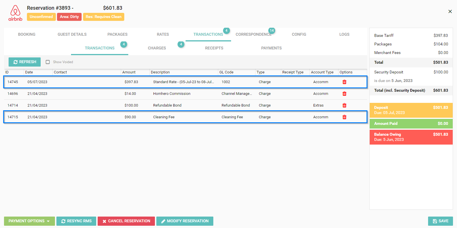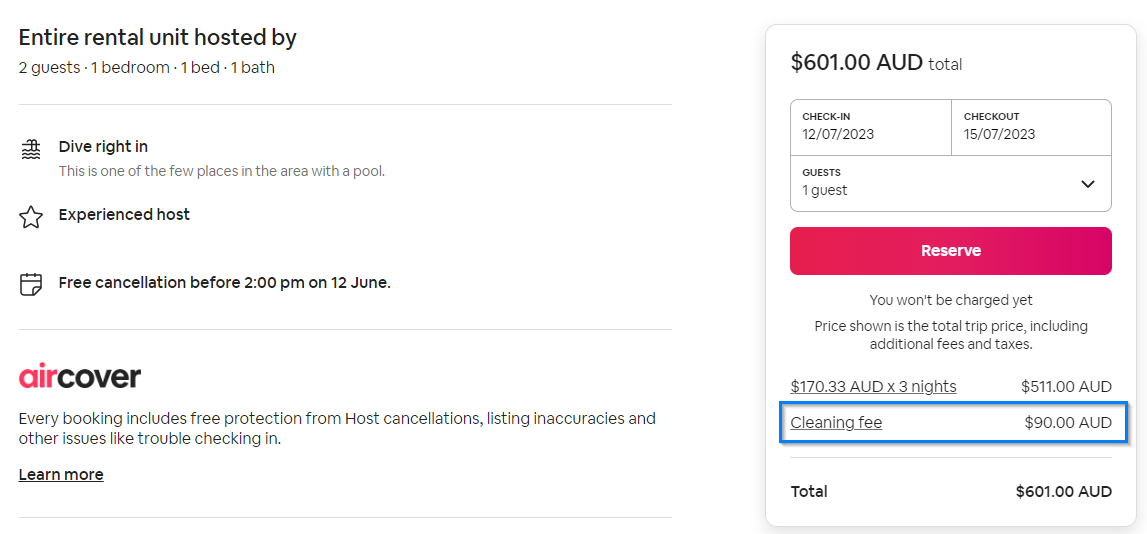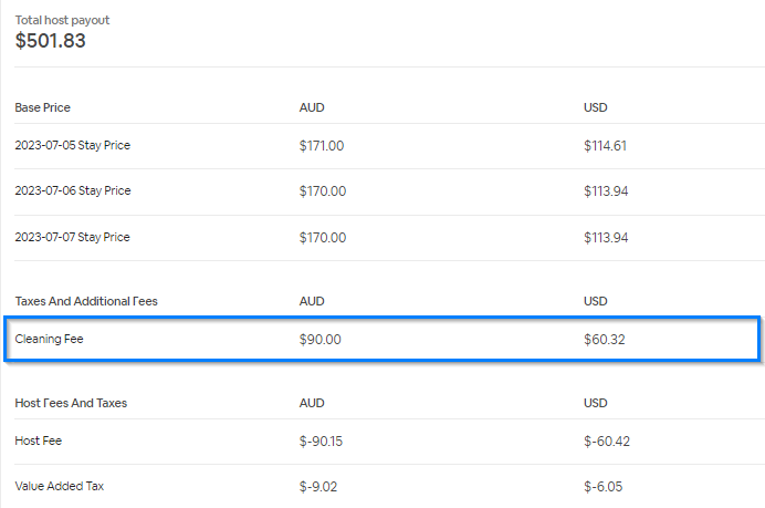 For example, if you set the cleaning fee in the Pricing Settings for a specific Airbnb listing in Homhero, this will display as an additional itemised fee to the guest, however when the booking is delivered to Homhero it will be included in the stay price (base rate).