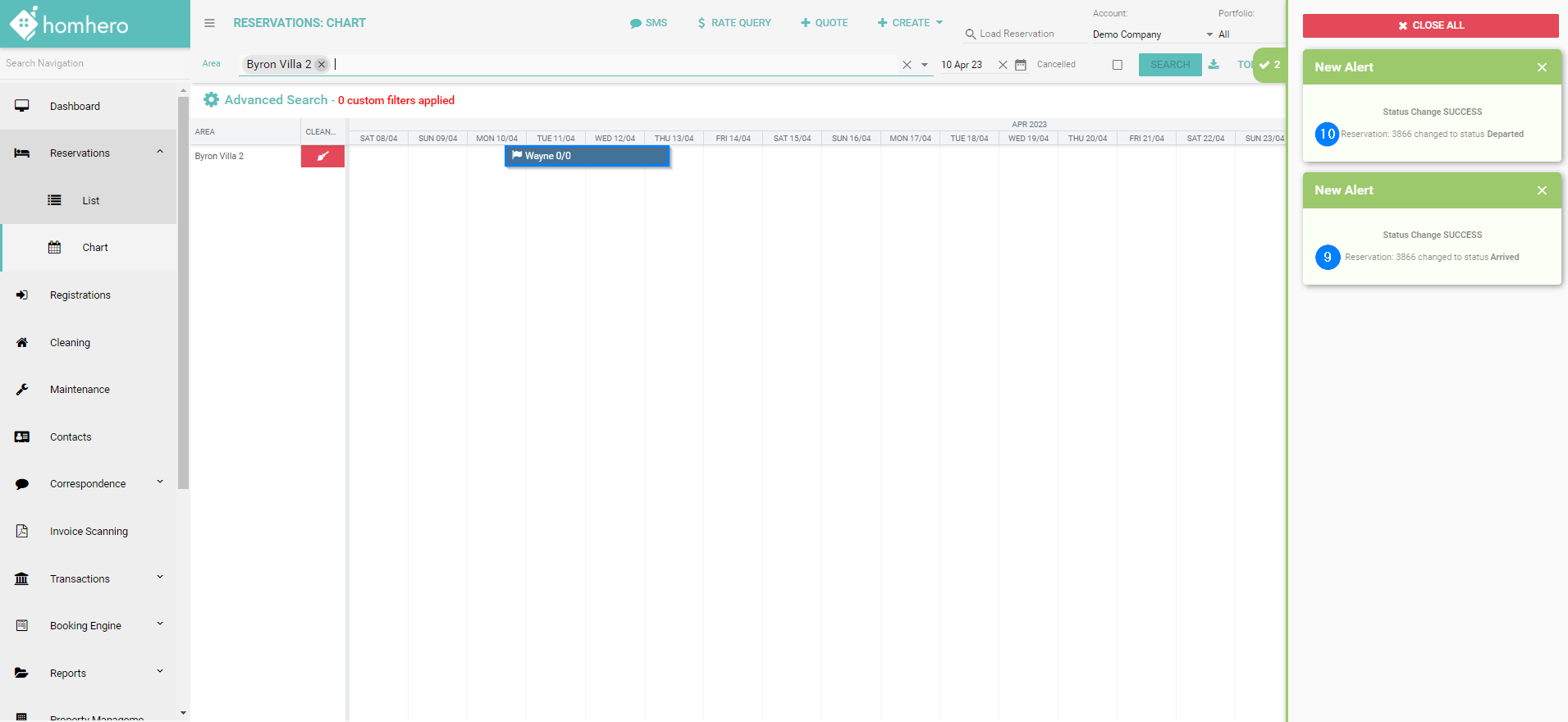 This article will explain how to update the booking status for a reservation in the past, when the current reservation is marked as arrived. This generally happens if there has been an RMS outage or issues with the Auto Arrival / Auto Departure functionality in Homhero, which has resulted in the booking status not updating automatically. This could also happen if you manually arrive and depart your bookings, but you have missed this process for a reservation that is now in the past.