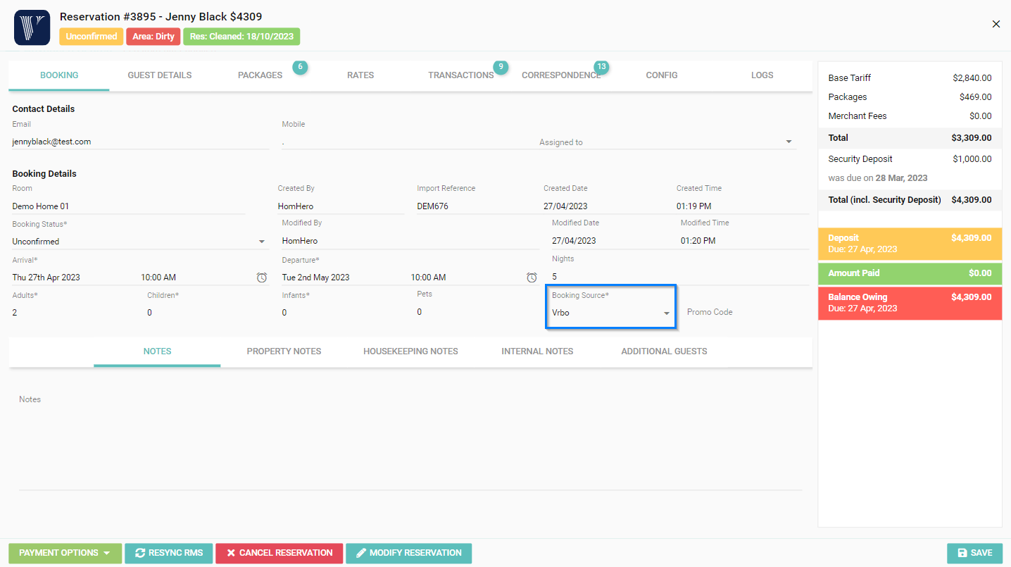 The Reservation Screen is the only place in Homhero to update the booking source of a reservation.