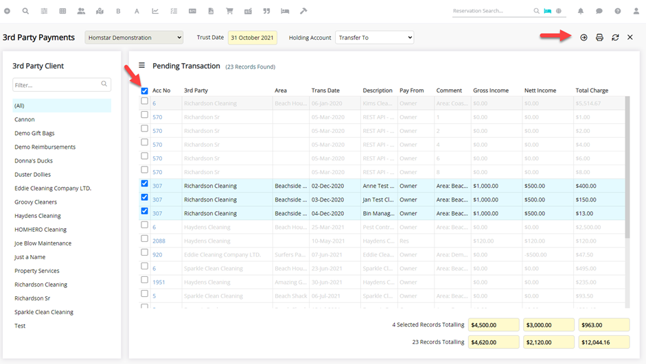 3rd Party suppliers are paid from your Trust Bank Account. NB If there is insufficient income in the Owners Account, the 3rd Party charge cannot be paid and you will need to ensure you Hold Payment back from your Owners to build up funds.