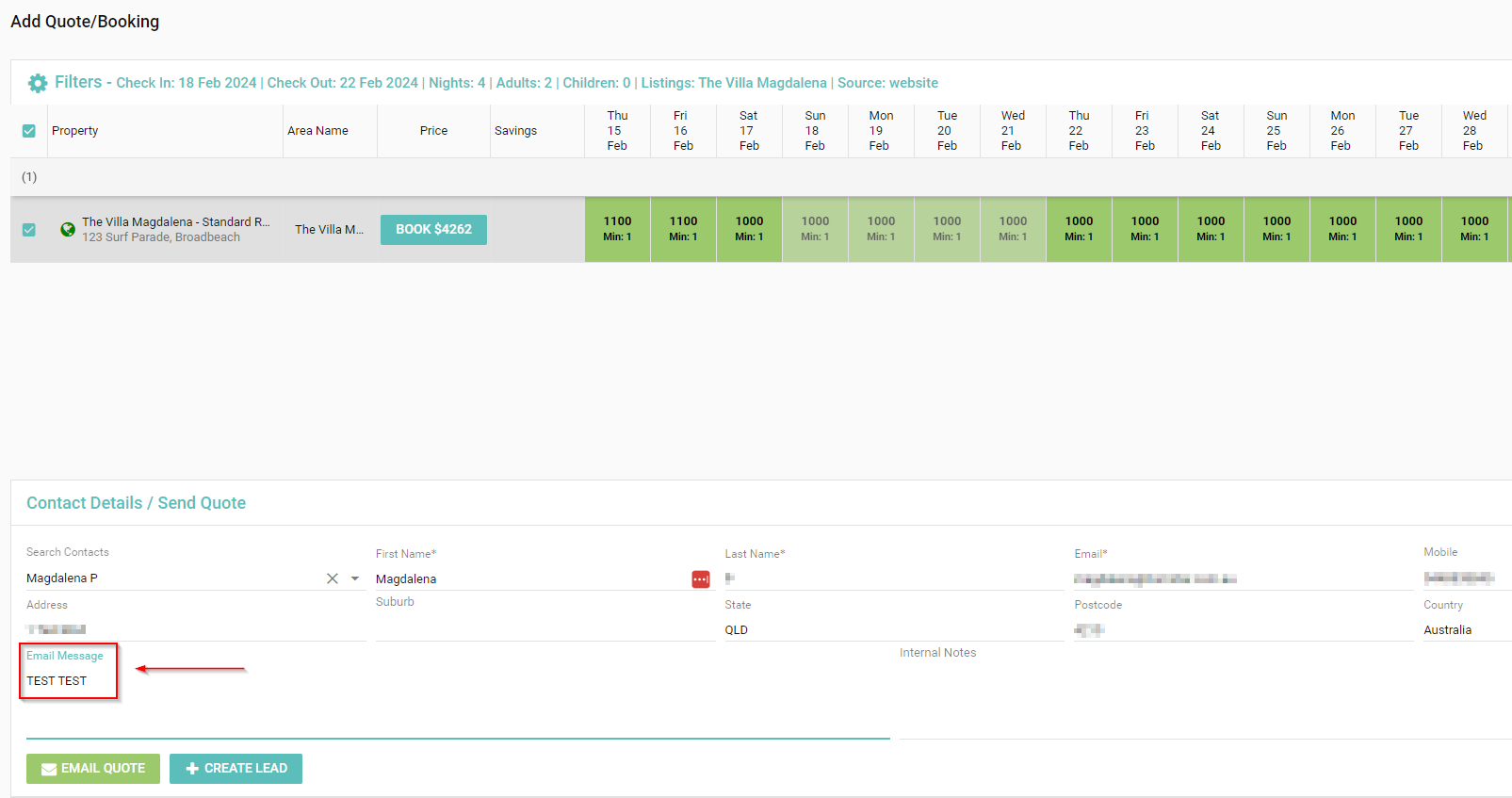 After sending a quote, guests will receive an email with all the selected properties, prices, and additional information about the listings.