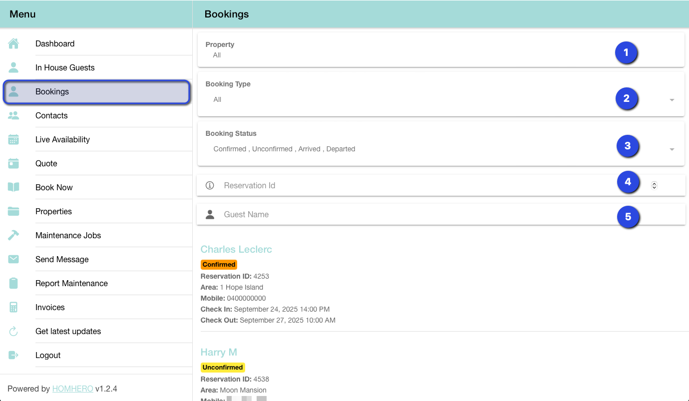 - Enter a Guest Name to display any bookings related to that guest in the list.