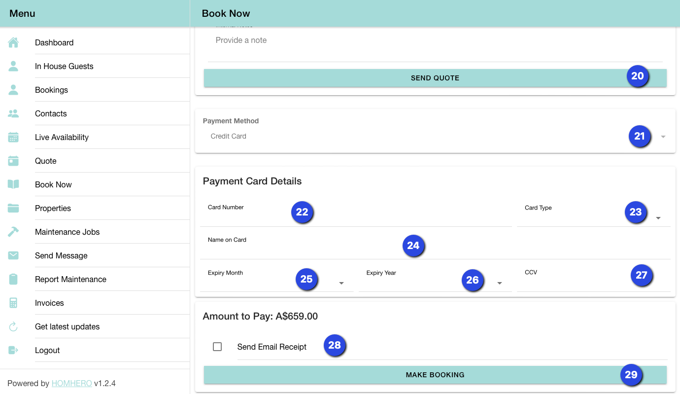 Move onto the next step to make the booking, or click Send Quote to send the quote to the quest.