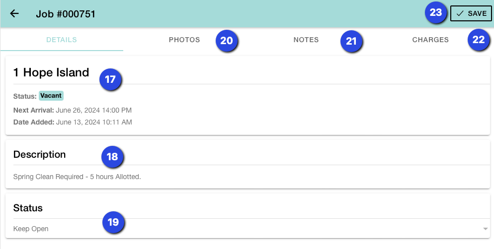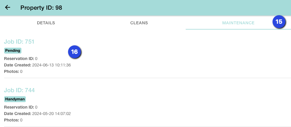 Property name, Status of the property and Date maintenance job was added is shown at the top.