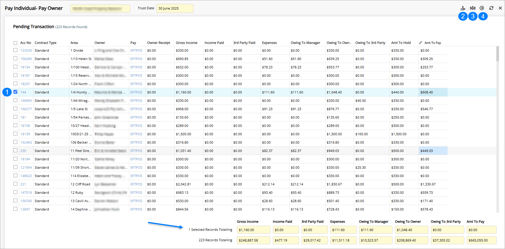 Note: A suggestion here to check the number of selected records equal the number of owners you are paying.