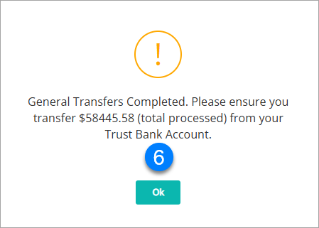- You will receive confirmation that the General Transfers have been completed. Click OK to finish