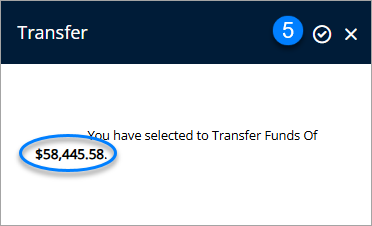 - A dialog box will appear, showing the amount of funds to be transferred. Click the tick to proceed