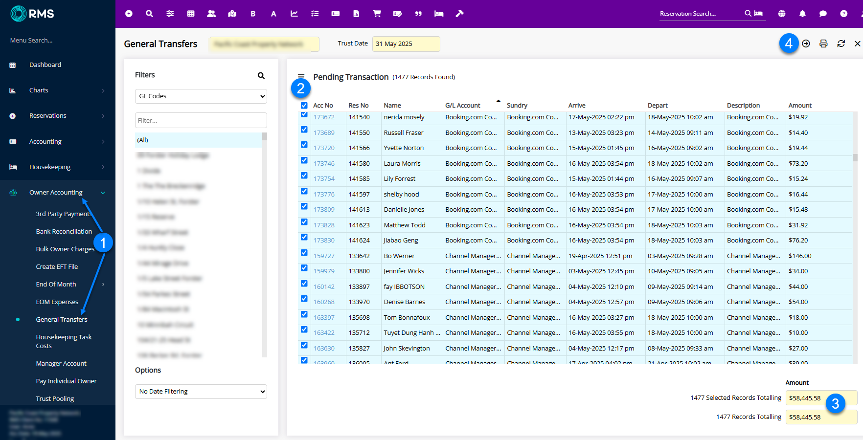 - Repeat for General Transfers (please note the date used here is the date of the actual day you are disbursing the trust account - always different from the EFT Date for Owners, Manager and 3rd Parties).