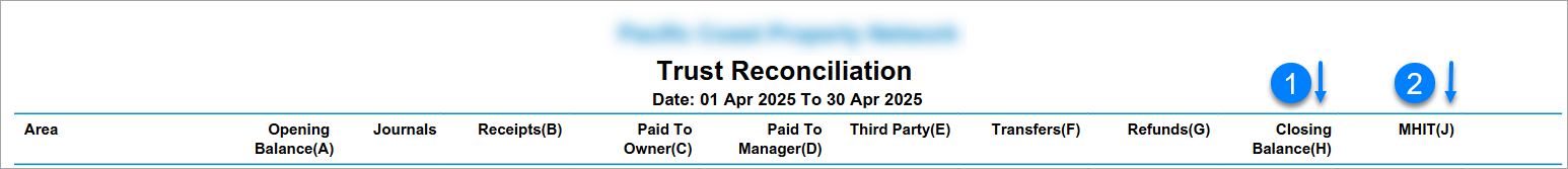 - The Closing Balance (1) and MHIT figure (2) for each Area must be the same