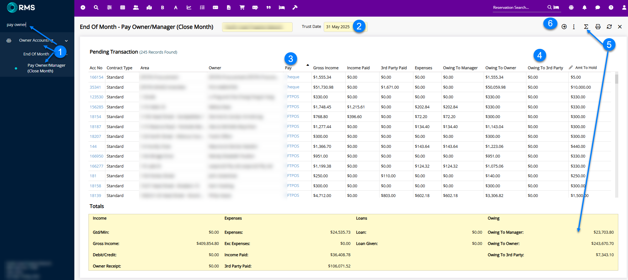 It is imperative you have checked the owner statements and investigated any issues accordingly as once Pay Owner/Manager is run, it cannot be reversed. Any amendments will need to be made in the following Trust month.