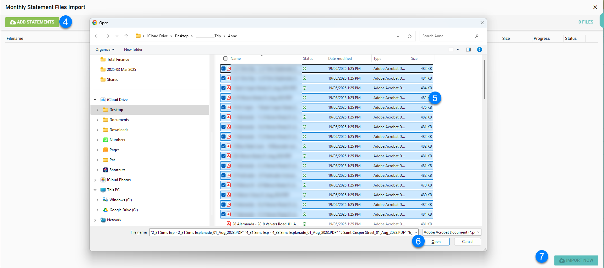 Note: Before completing the next step ensure the progress and status of each statement has finished uploading. You can check this using the Progress and Status column.