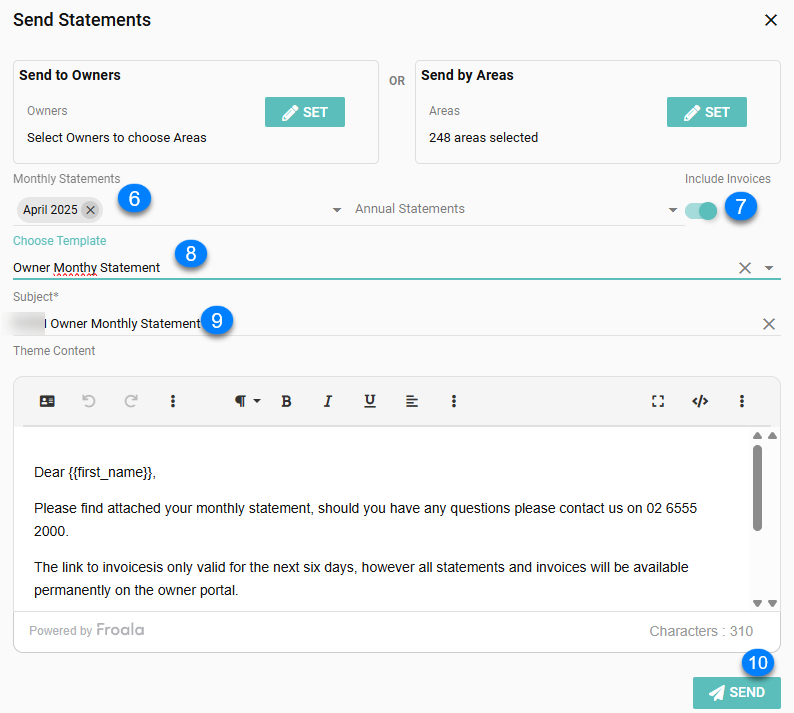 - Select the month you want to send statements for