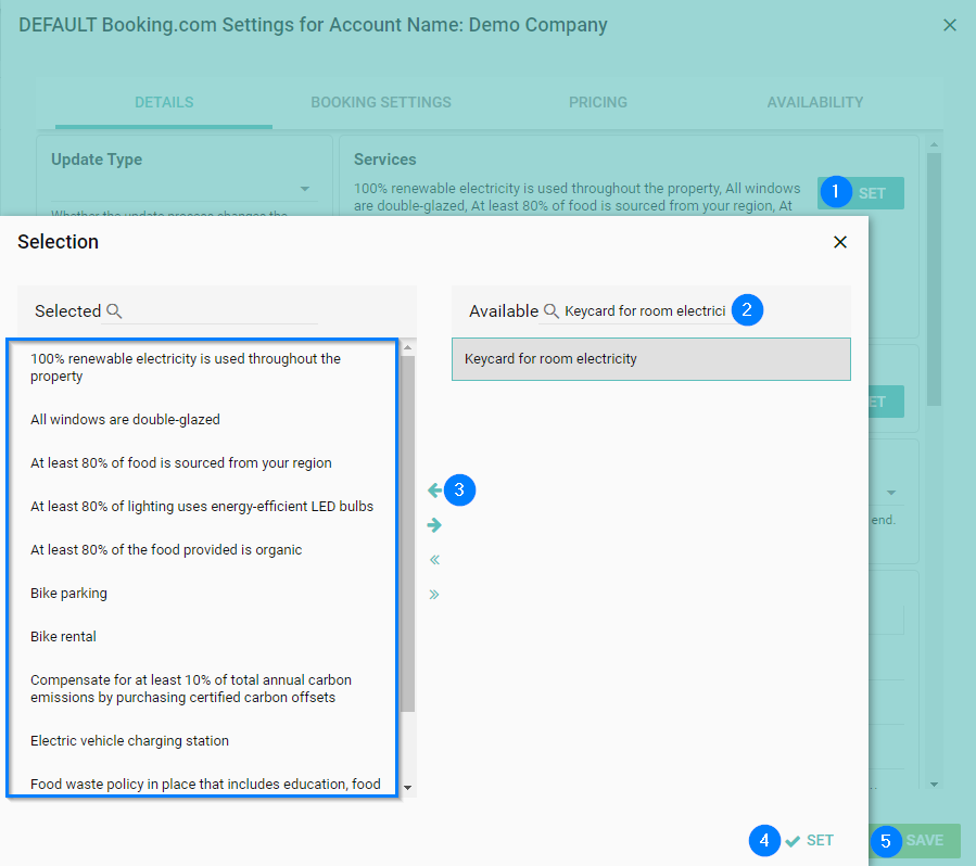 You can add sustainability practices in Homhero via ''Services'' on a global or listing level. Here is the full list: