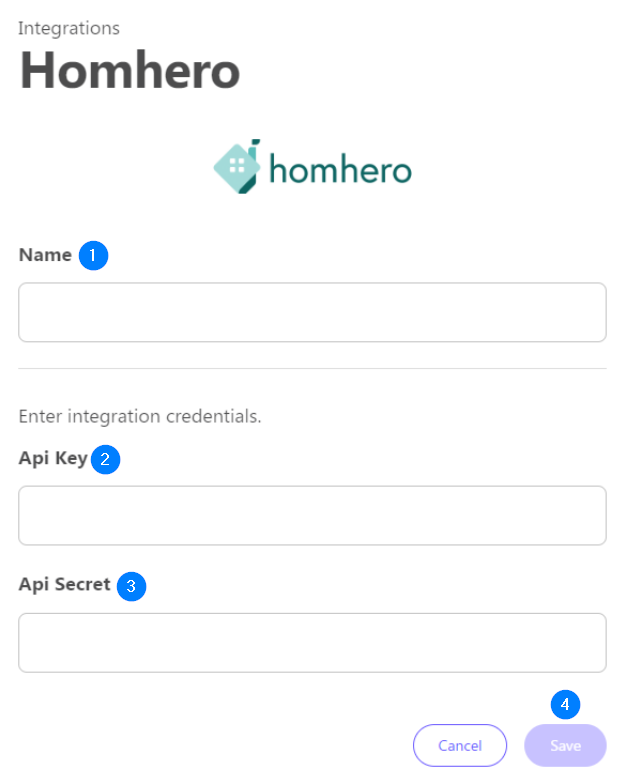 - Select Integration Centre > Homhero
