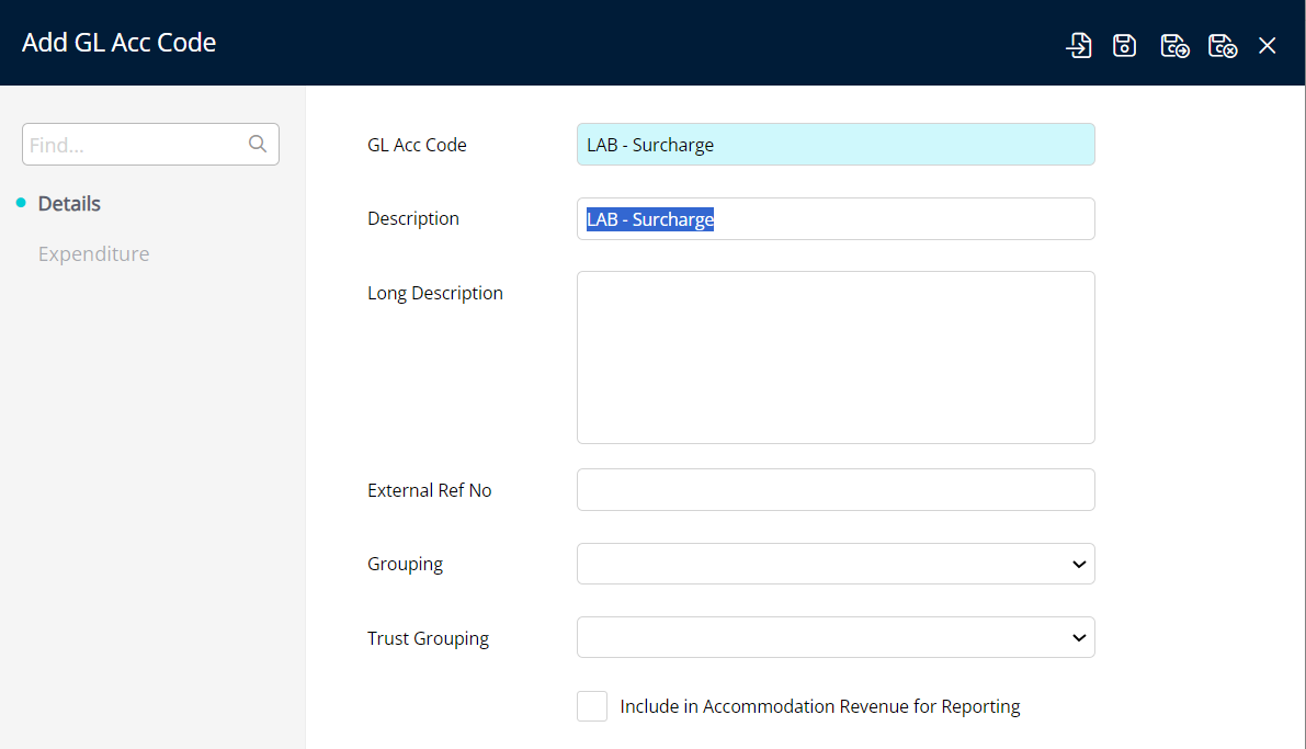 Enter the GL Code and Description + Save/Exit