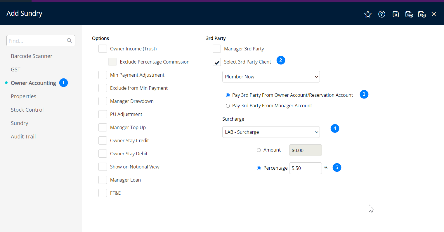 STEP 3 - Create a 3rd Part Creditor with a Surcharge
