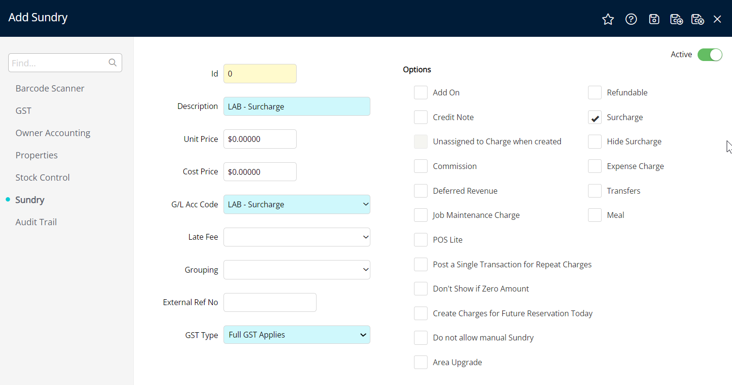 STEP 2 - Create a Surcharge Sundry