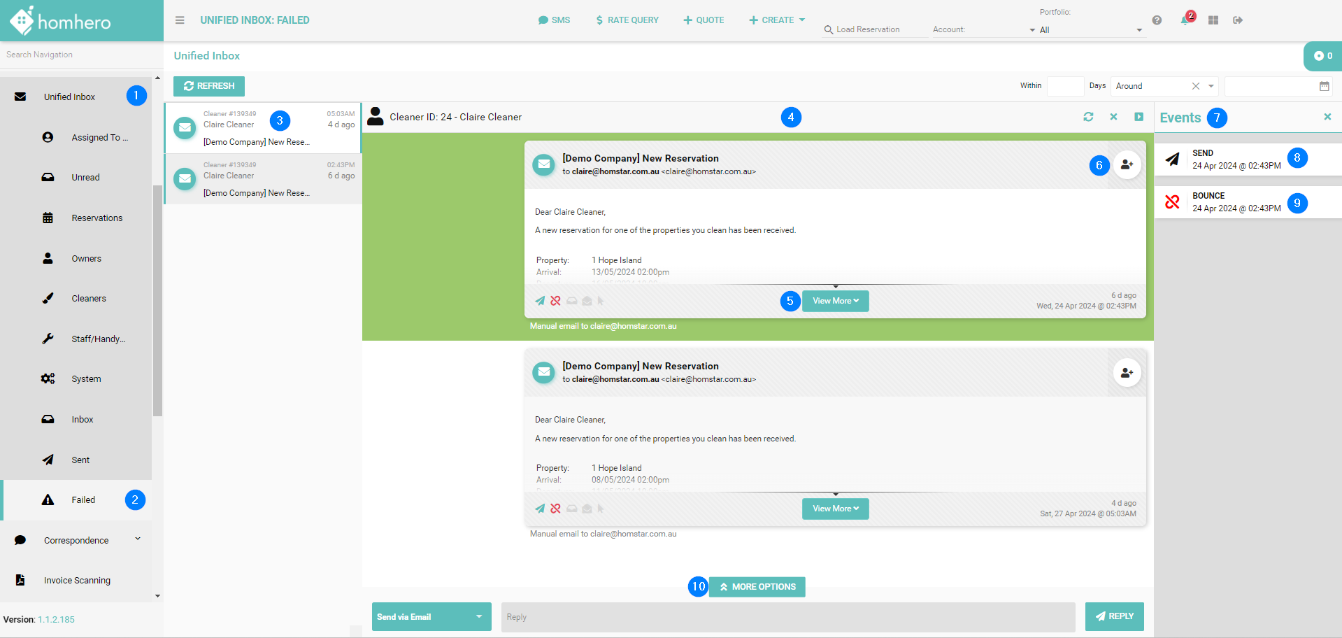 The Failed tab within Homhero's Unified Inbox provides a dedicated space to view any messages that were unable to be delivered. This includes failed emails, SMS, or platform messages, and helps ensure nothing important is lost due to delivery issues.