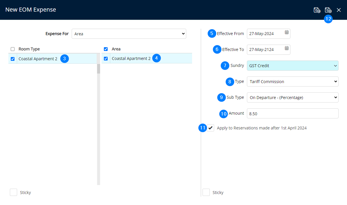 - Tick the checkbox Apply to Reservations made after 1st April 2024