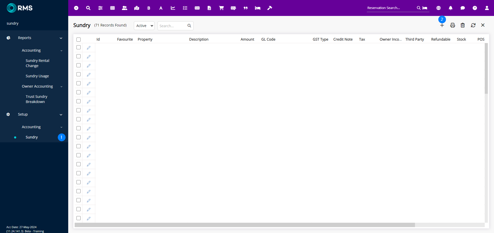 - Search and open the Sundry page from the Menu Search
