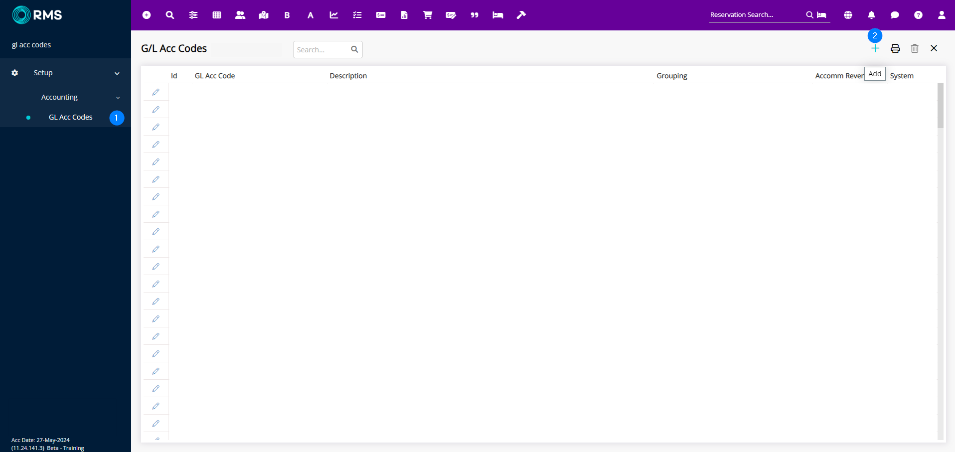 - Search and open GL Acc Codes from the Menu Search