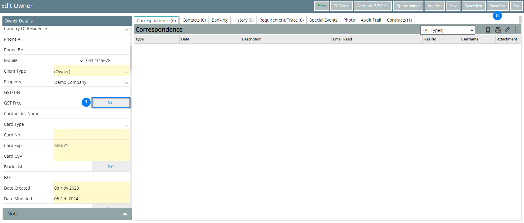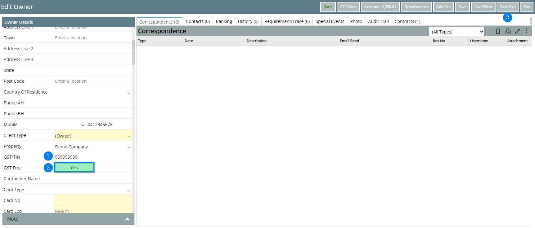 Step 3 - Add GST registration to Owner Contact