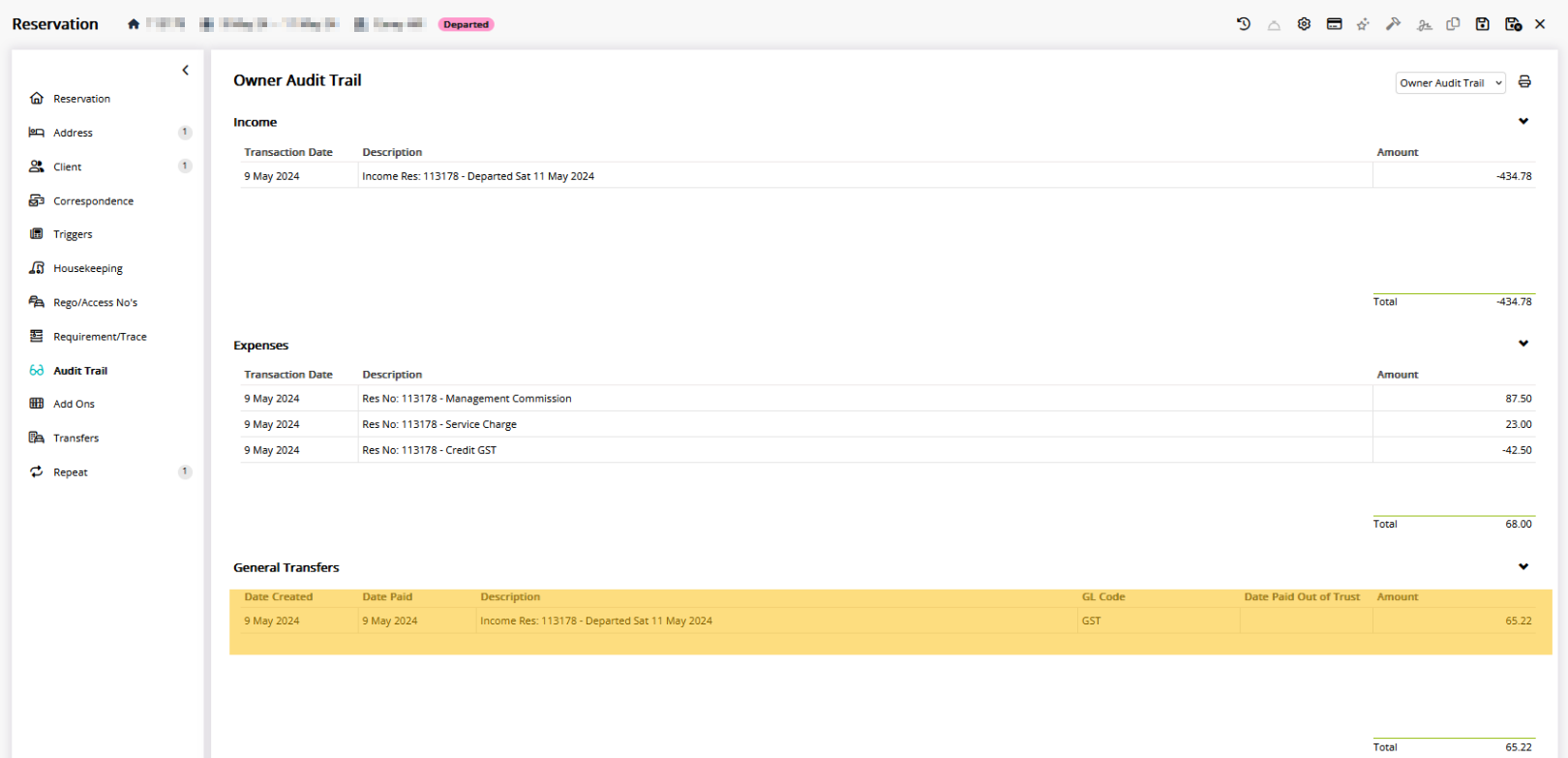Below is an example of the Owner Audit Trail which shows where the GST is directed to: