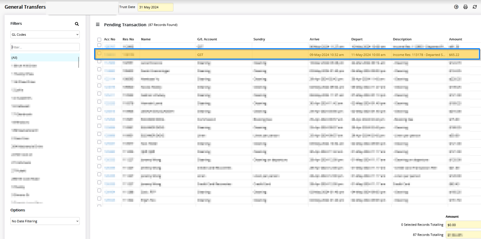 Below is an example of the GST showing in General Transfers: